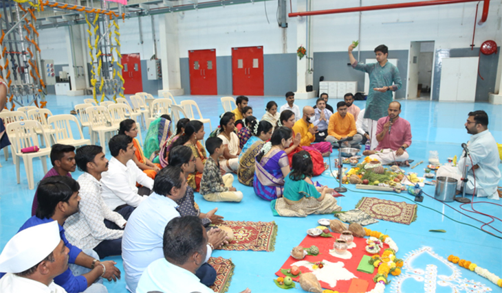 Our branch in India is situated in the state of Maharashtra. There, they have a tradition of offering prayers to the gods before embarking on any new venture. For this reason, the employees of our Indian branch inaugurated the new premises with a traditional celebration. Four priests performed the ceremony that took about three hours in total. This ceremony is intended to bring peace and harmony to the new premises and success for the company.