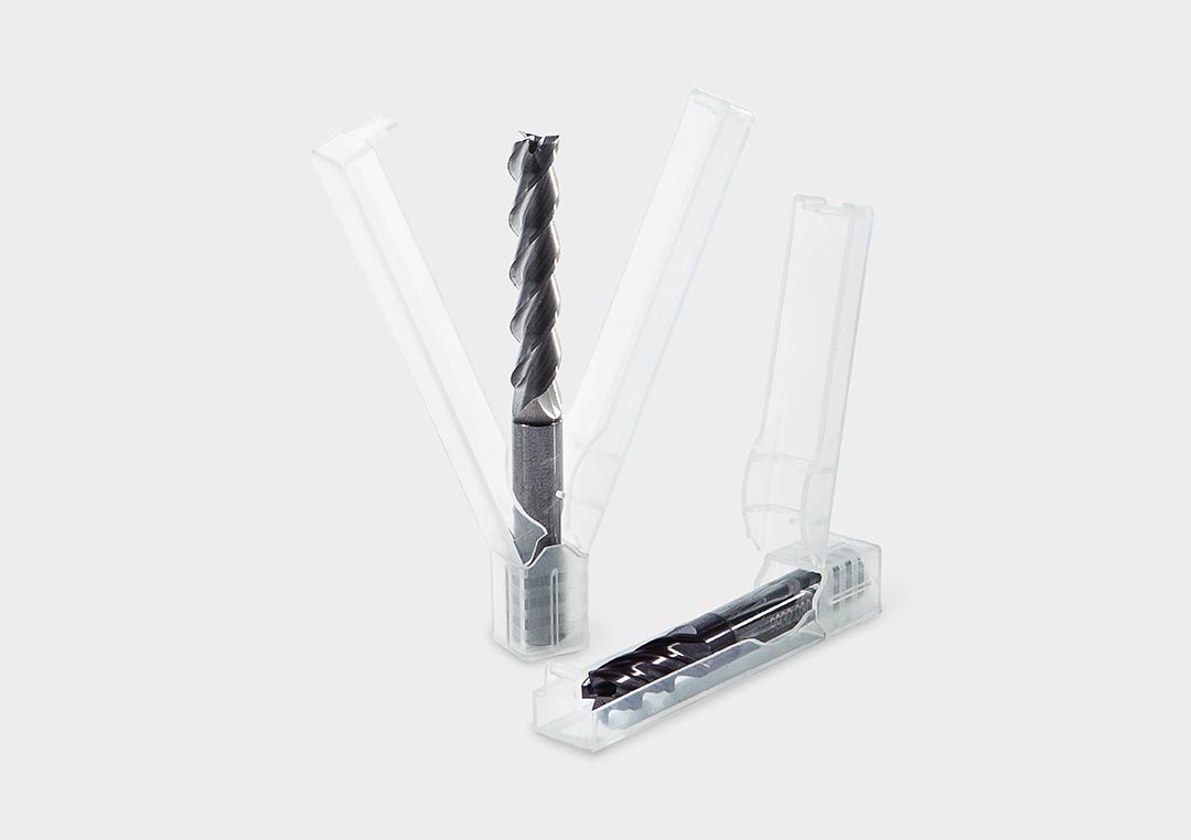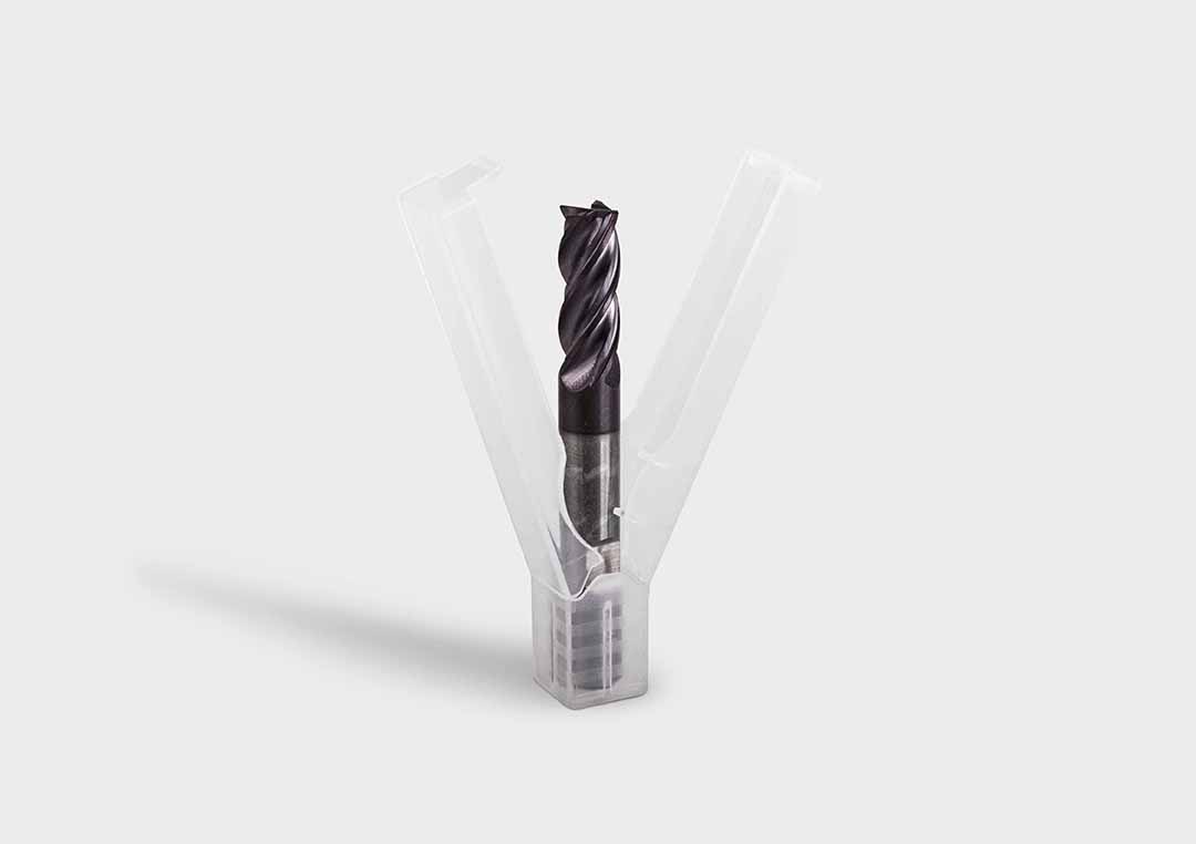 Embalaje de una sola pieza de alta calidad con sistema de sujeción XPress. Ideal para herramientas de mango de precisión como fresas de carburo sólido y brocas